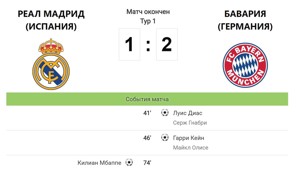 Этой ночью в Лиге Чемпионов стартовали четвертьфиналы плей-офф. В Мадриде и Лиссабоне зафиксированы две гостевые победы, а Мбаппе улучшил своё положение на вершине списка бомбардиров. Немецкая "Бавария" со счетом 2:1 одержала победу над испанским "Реалом" в первом матче четвертьфинала Лиги чемпионов. Встреча прошла на стадионе "Сантояго Бернабеу". В составе победителей забитыми мячами отметились Луис Диас (41-я минута) и Гарри Кейн (46). Замечу, Кейн забил быстрый гол, через 20 секунда после перерыва. У проигравших отличился Килиан Мбаппе (74). Для француза этот мяч стал 14-м в текущем розыгрыше. Интересная статистика подсказывает, что Бавария впервые выиграла у Реала с 2012 года. В параллельной встрече английский "Арсенал" в гостях обыграл португальский "Спортинг" (1:0) благодаря голу Кая Хаверца в добавленное ко второму тайму время на 91-й минуте. Игрок «канониров» Макс Доумэн в возрасте 16 лет стал самым юным футболистов четвертьфиналов Лиги Чемпионов в истории. Ответные встречи в о