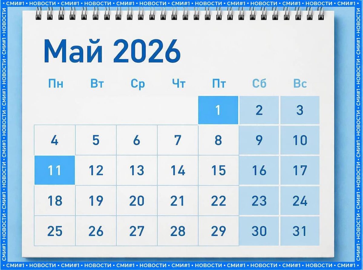 🗓️Россиян ждёт всего 19 рабочих дней в мае 2026 года