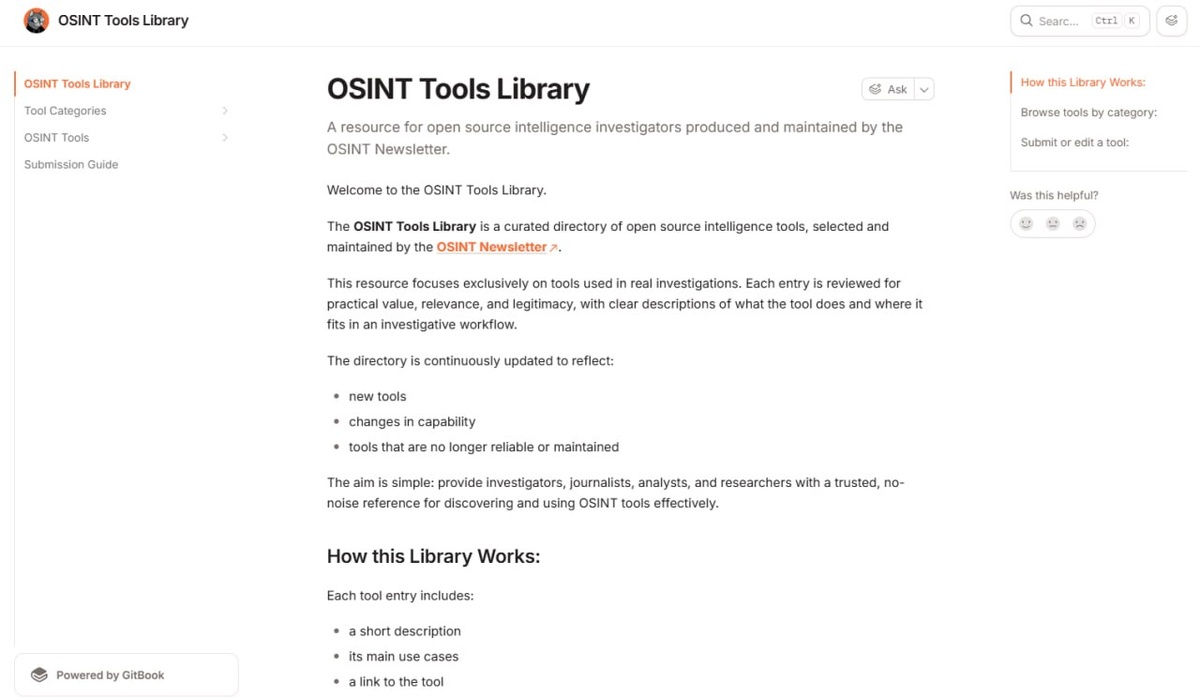— сотни ссылок, половина из которых мертва, а вторая — просто бесполезна. Где-то лежит один парсер, где-то — другой, а вспомнить, чем ты пользовался в прошлом кейсе, уже нереально. The OSINT Tools Library — tools.osintnewsletter.com Это не очередная простыня из «100500 инструментов для всех случаев». Авторы подошли к делу с практической стороны: каталог курируется под конкретные задачи расследователя. Внутри — только то, что реально применялось в делах, а не скопировано с соседнего сайта. 📱 Telegram | 🌐 ВК | 📲 MAX