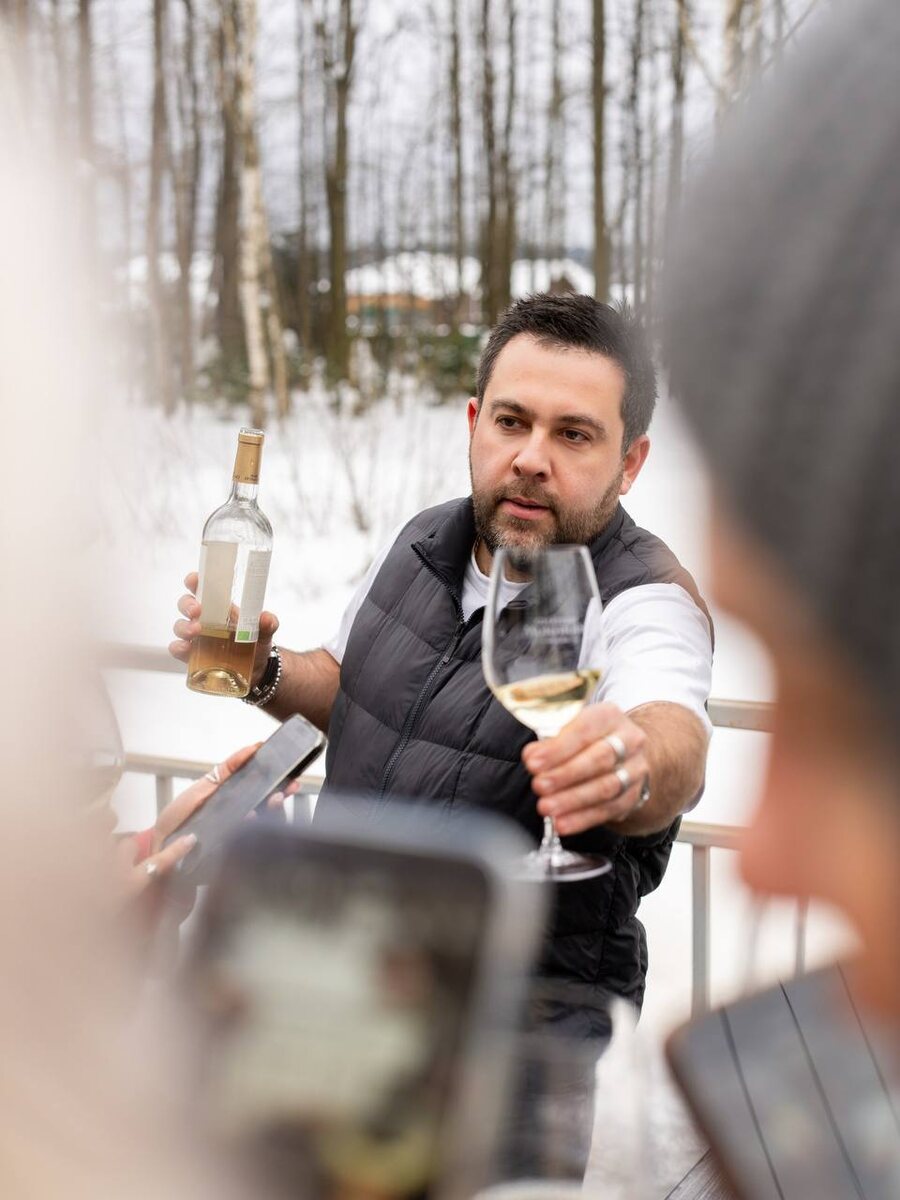 И вот на излёте этой снежной зимы я доехала, по приглашению Вани Глушкова и Château Mukhrani. «На даче» – самостоятельный проект шефа Дмитрия Парикова, который раньше отвечал за все рестораны Перельмана, а теперь курирует кухню «ТЭМУ», писала об этом здесь. Дача настоящая (час на электричке от Москвы), шеф настоящий, а вот происходящее ничем кроме как волшебством не назовёшь, потому что это место – про атмосферу, в которой тебе просто очень хорошо. Уютно, вкусно и, если повезёт, как нам, удивительно по вину и компании. О винодельне и её статусе в винном мире слышала, но не то чтобы многое пробовала – тут, под ужин от Парикова и Орлова, его правой руки, была возможность распробовать – горули мцване из окрестностей Гори, фантастической тонкости розе из саперави и тавквери, дающее фору многим розовым из Прованса, резервное белое из горули мцване с выдержкой в дубе, резервное шавкапито к умопомрачительным бараньим почкам в пинонуарной стилистике, «секретный» фирменный красный бленд, соот