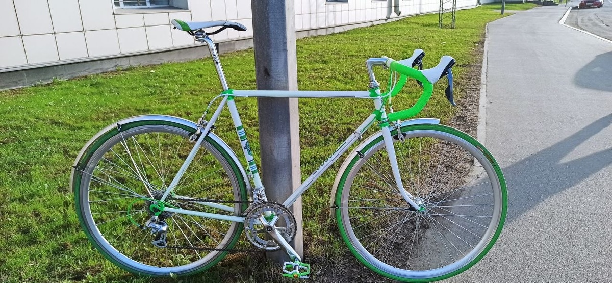 ) Рама Старт-Шоссе В553, 71 год. ) Остальное абсолютно всё современное по кругу. На оригинальных колёсах и навеске наездился в юности. Теперь только так. )
