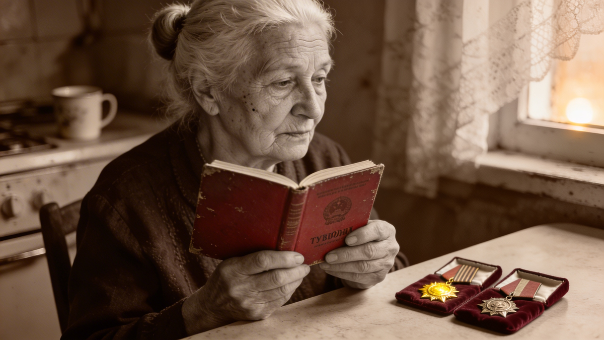 Я встала, вышла в коридор, открыла старый платяной шкаф. На верхней полке, под стопкой постельного белья, лежала потрёпанная красная книжечка. Трудовая. Рядом — две медали в бархатных коробочках. Я взяла их и вернулась на кухню.
