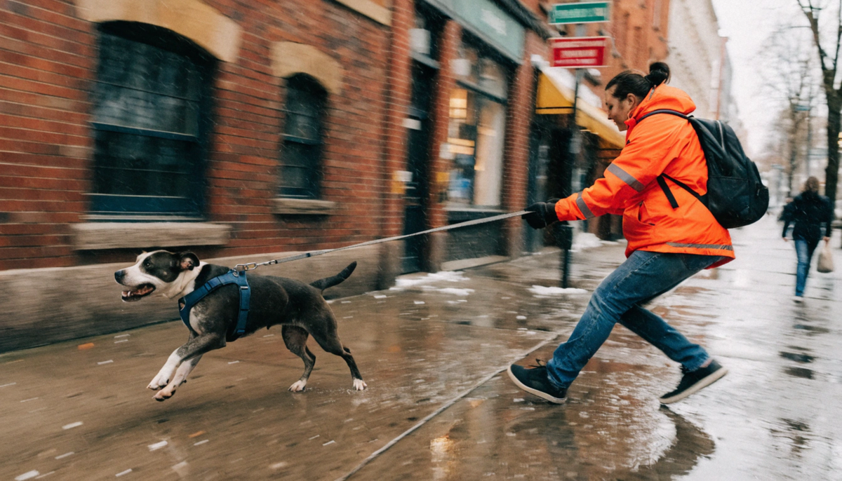 Прогулка превращается в буксировку. Пёс рвётся вперёд, поводок натянут струной, плечо уже устало, а собака всё равно тянет. Вы пробовали одёргивать, останавливаться, говорить «рядом» — ничего не помогает дольше двух минут. И с каждой прогулкой кажется, что становится только хуже. Проблема почти никогда не в породе и не в характере собаки. Она в том, что происходит на поводке — и это можно изменить. Большинство хозяев думают, что тянет собака. На самом деле тянут оба. Пёс пошёл вперёд — хозяин не остановился и пошёл следом, удерживая натяжение. С точки зрения собаки: я тяну — мы идём туда, куда я хочу. Система работает, зачем что-то менять. Натянутый поводок — это постоянный физический контакт, который собака научается игнорировать. Как фоновый шум. Одёргивание в такой ситуации тоже не работает: пёс получает рывок, на секунду замедляется, потом тянет снова. Ничего не изменилось. Первый шаг, который реально работает — полная остановка в момент натяжения. Не рывок, не команда, просто стоп