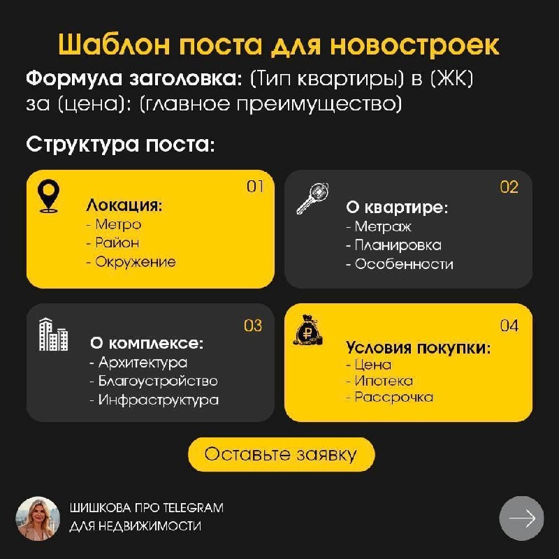 Заявки на канале чаще всего мы собираем именно с продающих постов. Но не все продающие посты одинаково хорошо генерируют заявки. Решила написать пост-шпаргалку, который поможет вам создавать по-настоящему продающие посты и привлекать клиентов из Telegram. Структура заголовка ➖ Выделите главное преимущество в первой строке (цена, локация, уникальная особенность). ➖ Используйте эмодзи для привлечения внимания. ➖ Укажите метраж и формат квартиры (студия, евро-двушка и т.д.). ➖ Добавьте срочность или уникальность предложения, если есть. ➖ Выделите текст жирным шрифтом для лучшей читаемости. Пример: ❤️ Двухкомнатная квартира на «Московских воротах» с чистовой отделкой за 10 000 ₽ в месяц: 10 минут пешком до метро, дом сдан. Блок о локации ➖ Укажите район города. ➖ Перечислите ближайшие станции метро с точным временем пешком/на транспорте. ➖ Добавьте значимые объекты (ТЦ, парки, набережные). ➖ Отметьте инфраструктуру района (школы, детские сады, поликлиники). ➖ Используйте эмод