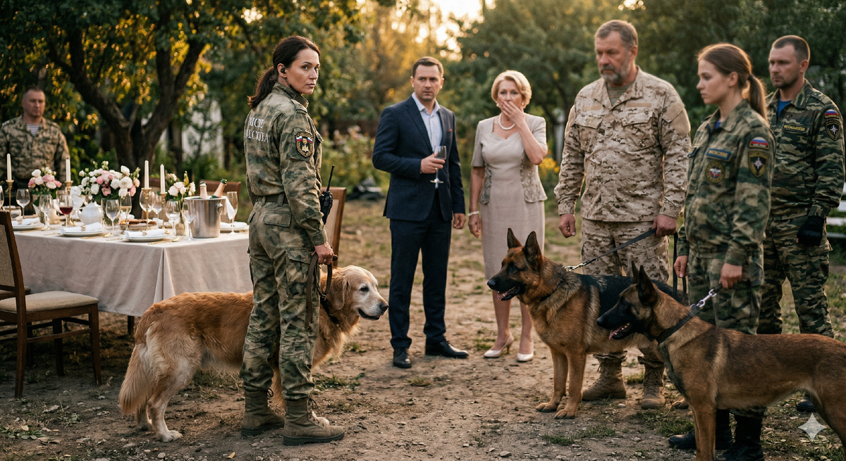 Аркадий замер с бокалом в руке. Его гости, только что шумно обсуждавшие перспективы карьерного роста, как-то разом сдулись. Камуфляж и рабочие шлейки собак на фоне их шелковых галстуков и кружевных платьев смотрелись как десант в оперном театре.