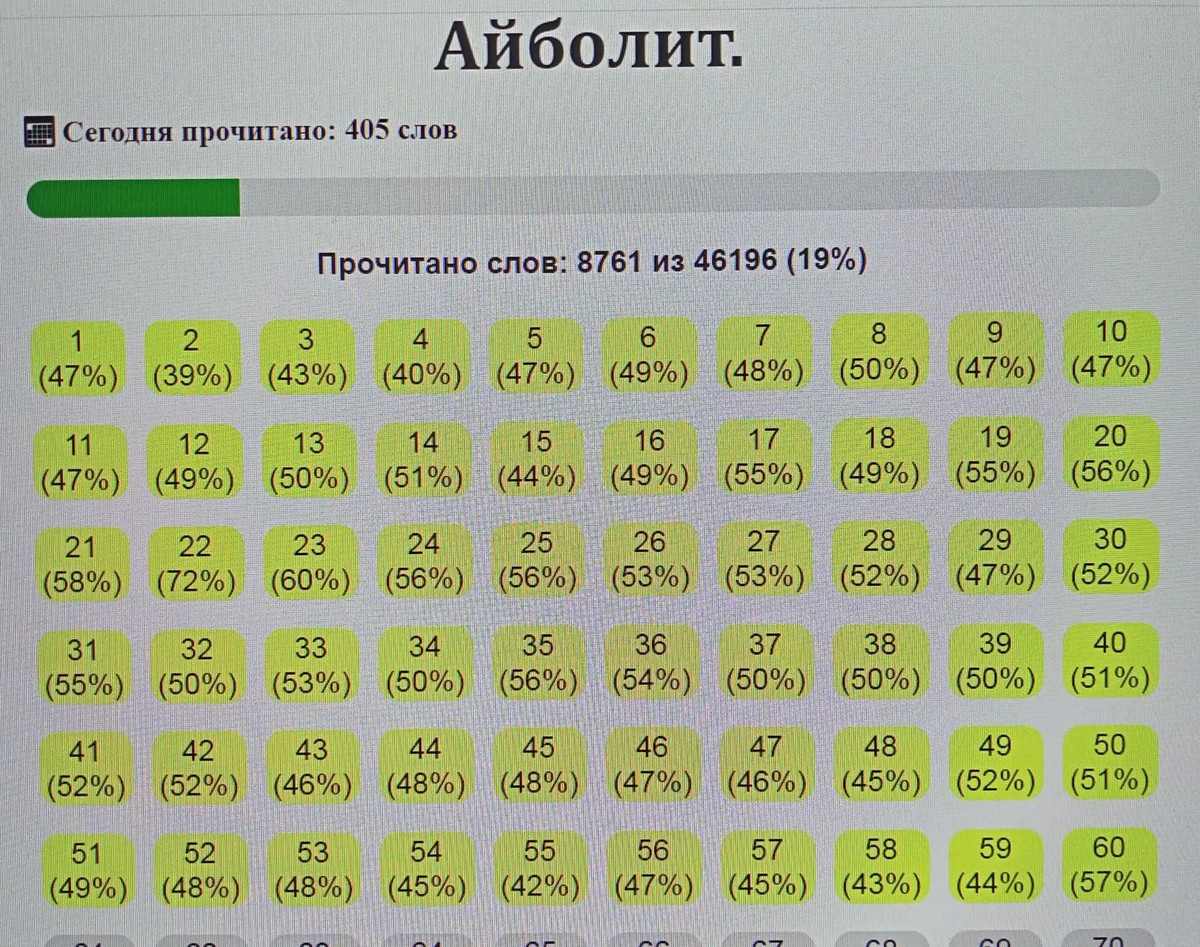 Так же статистика по двум другим произведениями, которые Гриша читает целиком.