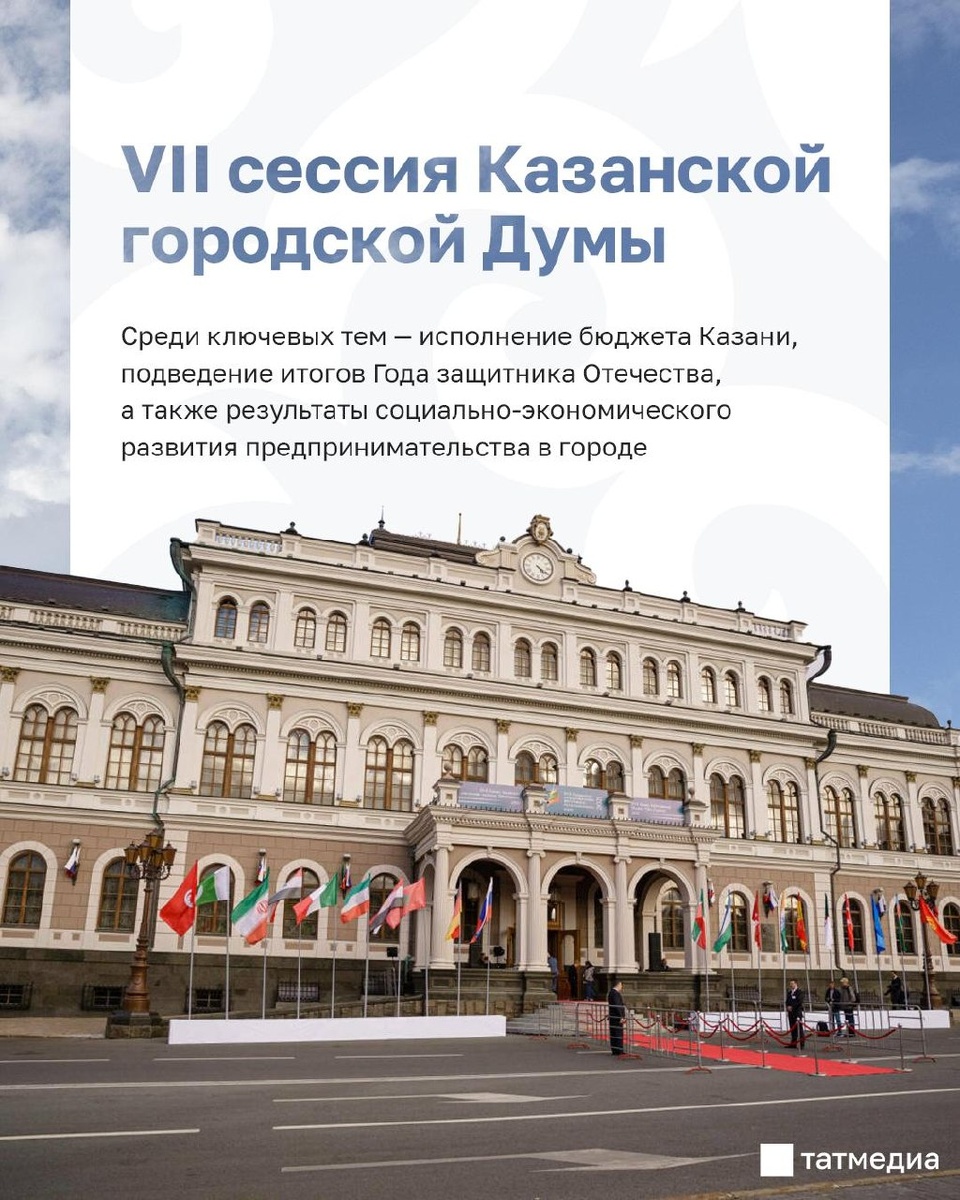 🗣💼VII сессия Казанской городской думы пройдет 15 апреля В повестку планируют включить восемь вопросов, в том числе исполнение бюджета Казани, итоги Года защитника Отечества и развитие предпринимательства в городе. @tatmediaofficial | Telegram замедлен, читайте Татмедиа в MAX