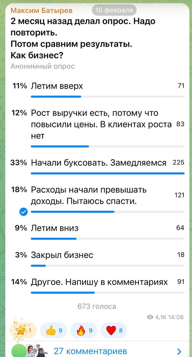 В целом видно, что бизнес не обрушился, большинство держаться и борются с новой реальностью. Но 85-90% находятся в состоянии тяжёлого напряжения, а это печально.