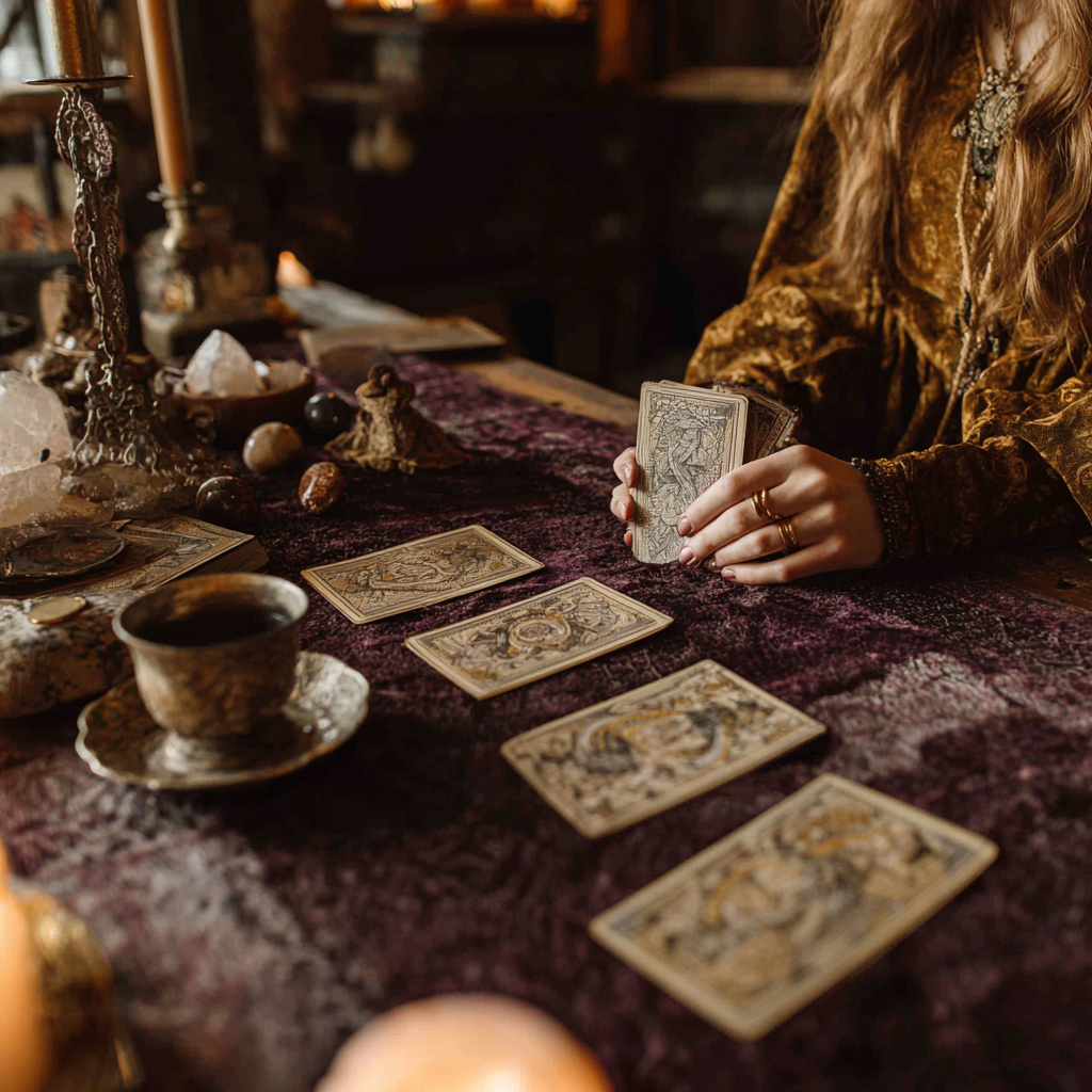 Вот тут у нас — самое живое, нервное место. Королева Кубков шепчет: «Позволь себе быть мягкой, ранимой», она держит за руку тогда, когда другие бросают фразы «возьми себя в руки». Девятка Мечей добавляет перцу: накрученные переживания, внутренний спор, бессонные ночи, когда ум то и дело возвращается к старым обидам, стыду, разочарованиям. Ощущение, будто прошлое не отпускает: сна нет, слёзы льются, а утром всё те же заботы.