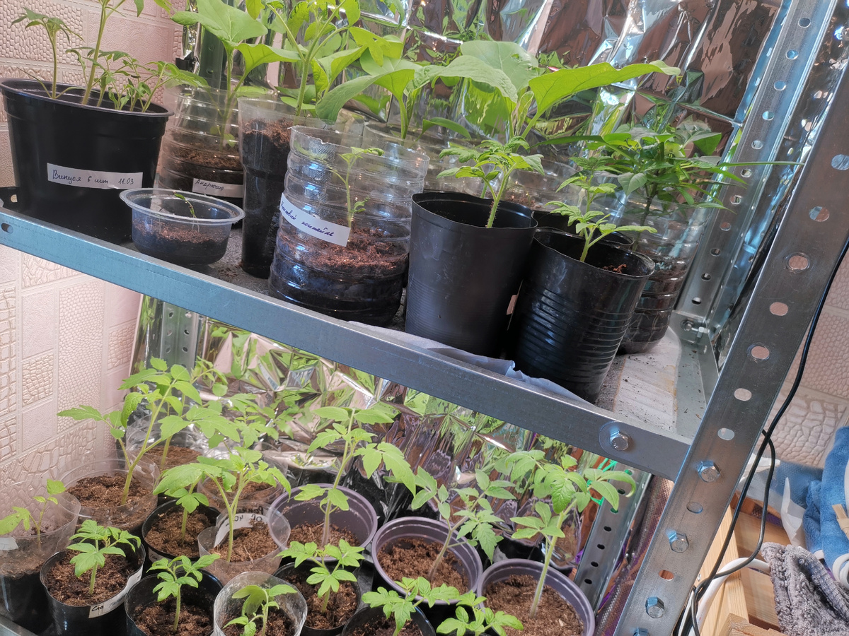 Рассады у меня в этом году ну оооочень много. Почему? Потому что я сказала, что посажу строго под теплицу 55 кустов. И тут понеслось. Этим надо, тем надо. Почему-то я решила, что для меня это будет легко и просто. По сути, так оно и вышло, сложности особенной нет, даже места в этом году оказалось как-то внезапно больше, чем было раньше. Рискнула задействовать балкон, это упростило задачу, хотя за холод я переживаю, конечно. У нас тут минус обещают, как бы чего не случилось.