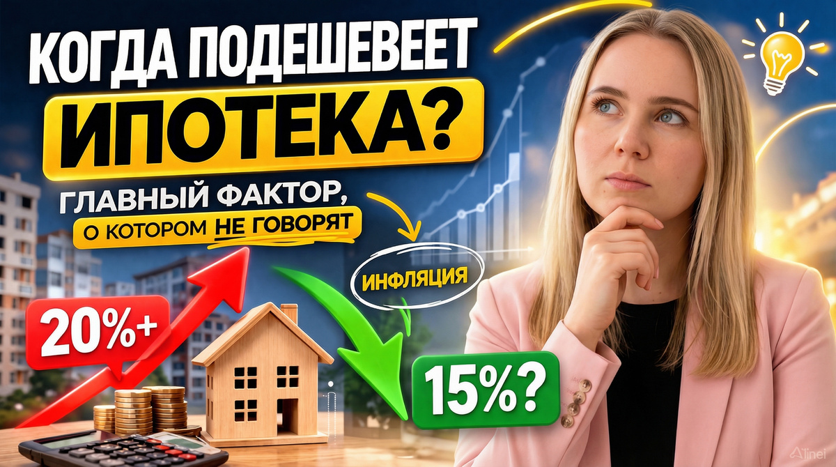 Инфляция — это не только рост цен в магазинах, а один из главных факторов, который определяет стоимость ипотеки. Центральный банк повышает ключевую ставку, чтобы замедлить рост цен. Это делает заёмные деньги дороже для банков, которые повышают ставки по кредитам, включая ипотеку. В итоге, покупка жилья становится менее доступной: ежемесячные платежи растут, а требования к заёмщикам ужесточаются. Именно поэтому в периоды высокой инфляции рынок недвижимости часто замедляется. Люди откладывают покупку, а застройщики вынуждены предлагать скидки или субсидированные программы. Когда инфляция начинает снижаться, Центральный банк получает возможность уменьшать ключевую ставку, а банки — снижать проценты по ипотеке. Это делает кредиты дешевле и повышает интерес к покупке жилья. Текущая ситуация (начало 2026) После пика: Прогноз по ипотечным ставкам на 2026 год Очень важно понимать зависимость: Сейчас: Ставки по ипотеке могут оставаться высокими достаточно долго, пока рынок окончательно не убед