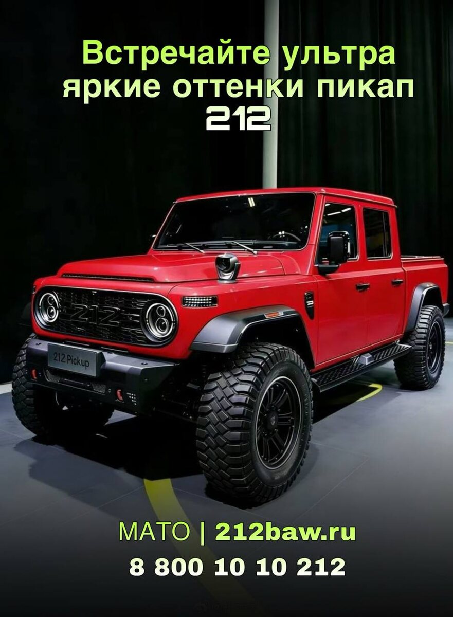 Теперь Ваш автомобиль может выглядеть так, что соседи по паркингу будут оборачиваться Предварительно будут доступны ультраяркие оттенки: 🔥 Красный — агрессия и страсть на каждый день 🧡 Оранжевый — заряд бодрости и солнца 💛 Жёлтый — выделяйся из потока 💚 Зелёный — свежий взгляд на бездорожье 💜 Фиолетовый — дерзость и харизма 👇 Какой цвет забрал Ваше сердце? Голосуйте в опросе! Друзья, все посты будем дублировать в MAX подписывайтесь! #212t01 #bj212 #baw212 #baw #mato #мато 🏁 Тест-драйв в Москве – оцените комфорт и динамику 🔧 Гарантийное и техническое обслуживание Наши контакты: • 8 800 10 10 212 и 8 495 10 15 212 • @manager212russia • 212baw.ru 📍Адрес шоу-рума: Россия, Московская область, тг.Одинцово, с.Немчиновка, ул. Московская, д.61. Построить маршрут