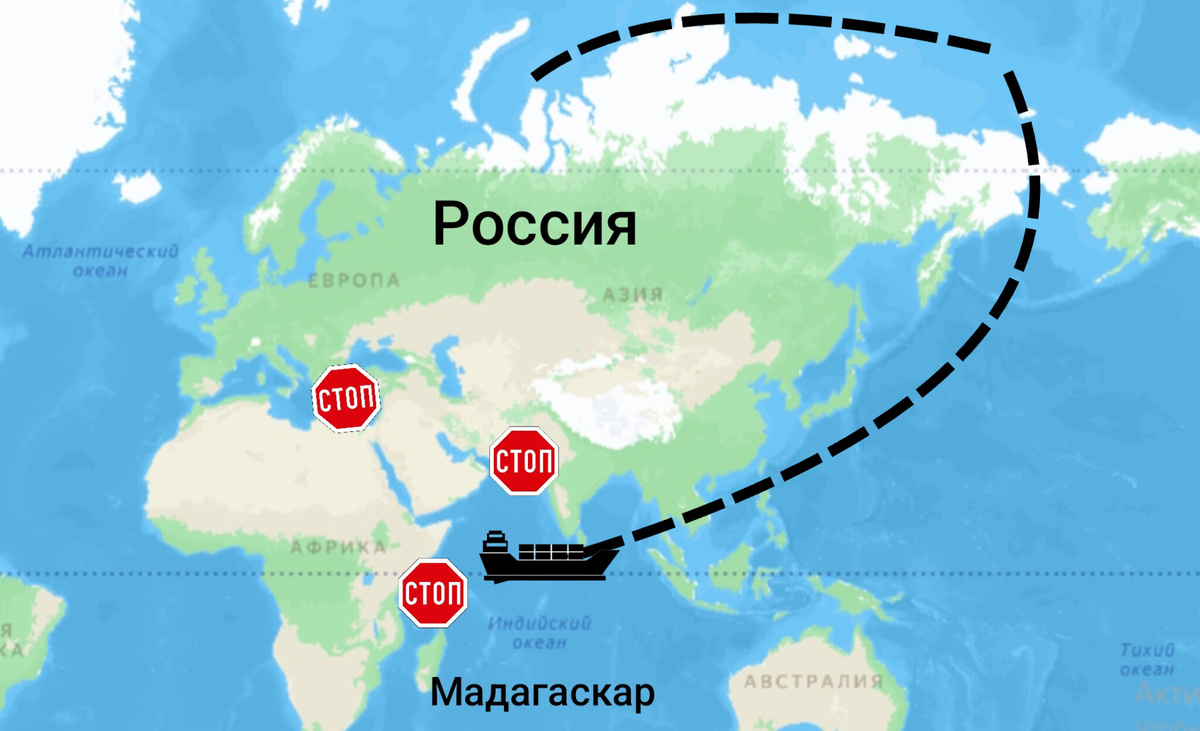 Причём чем меньше идёт судов через Баб-эль-Мандебский пролив (там, где хозяйничает Йемен), тем больше идёт через Африку. А Мадагаскар как раз на пути следования. Его обходят через Мозамбикский пролив и Индийский океан. Идеальная точка, чтобы вести разведку и при необходимости преградить путь. Тем более, что мы видели, как беднейшие страны это умеют делать (пример с Йеменом). А представьте, если будет перекрыт Ормузский пролив, Баб-эль-Мандебский и вот ещё Мозамбикский. Сдается, что будет стоять большая очередь из желающих за любые деньги договориться о пропуске судов.