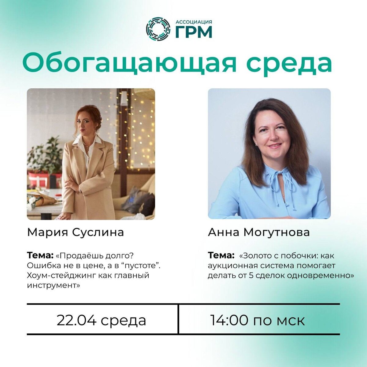 Поговорим о том, почему не продаются объекты и как выстроить систему, при которой сделки идут параллельно и без выгорания. 14:00–16:00 🗣 Спикер: Суслина Мария — спикер крупнейших форумов по практическому маркетингу недвижимости, победитель международного форума по маркетингу недвижимости, лучший блогер по версии РГР, риэлтор-хоумстейджер, руководитель агентства недвижимости и автор курса по рекламе 📌 Тема: «Продаёшь долго? Ошибка не в цене, а в “пустоте”. Хоум-стейджинг как главный инструмент» Почему даже при хорошей цене объект может «стоять»? Разберём, какие ошибки делают объявления невидимыми и как это исправить. На выступлении: ➖ Ошибки 90% агентов — почему объявление не работает ➖ Разбор реальных объектов: «что не так с фото?» ➖ Базовый хоум-стейджинг: как создать ощущение «дома», а не «витрины» ➖ 3 простых приёма, которые повышают ценность объекта без бюджета ➖ Что делать, если объект уже «завис» 🗣 Спикер: Могутнова Анна — 25 лет в профессии, более 300 сделок через торги,