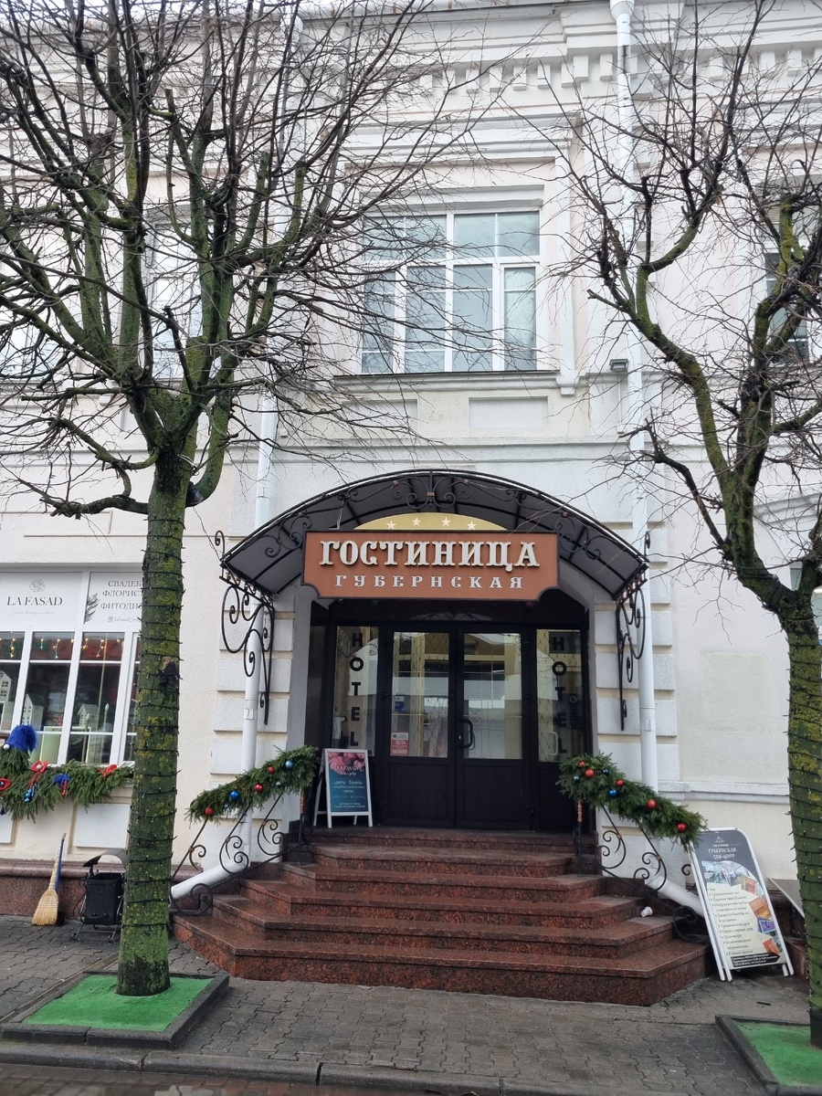 Почему выбрали именно эту гостиницу: нам нужен был центр города для прогулок, нужны были завтраки, так же интересовало наличие парковки, какие-то развлечения – бильярд, Спа, чтобы вечером после прогулок была возможность расслабиться. Эта гостиница полностью удовлетворяла нашим требованиям за исключением некоторых минусов. Бронировали гостиницу заранее, двухместный номер, Стандарт, в итоге получили двухместный Комфорт, что очень приятно. Адрес гостиницы: Могилев, Ленинская улица, 56 В гостиницу Губернская (4 звезды) мы приехали после 6 вечера, на автомобиле. Специально выясняли про парковку. Парковка есть (бесплатная), отличная, огорожена, стоят видеокамеры, автоматические ворота – открываются по команде диспетчера. Номер просторный, нам достался на втором этаже, с видом на центральную улицу. В номере есть холодильник с маленькой морозилкой, чайный набор, но без чайника (кулер с горячей водой на этаже). В номере был дополнительный диван, столик на колесах, рабочий стол и большая кроват