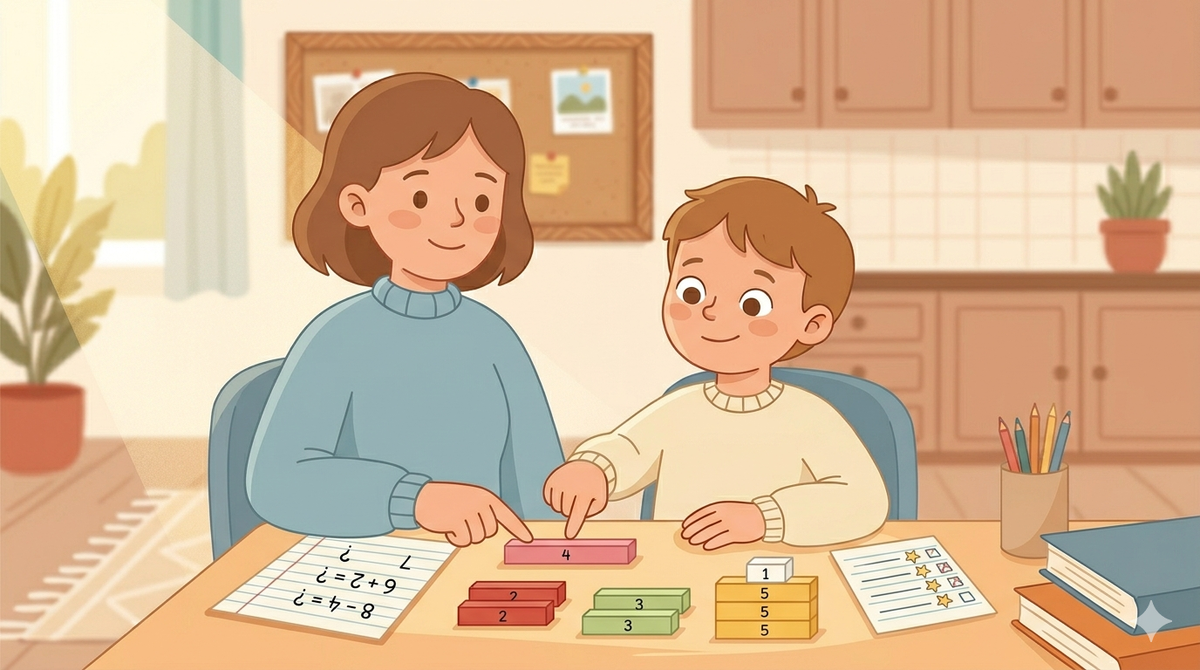 Без стресса. Тревога блокирует рабочую память, именно ту, которая нужна для математики. Если ребёнок нервничает на занятиях, сначала снизьте интенсивность, потом увеличивайте сложность.