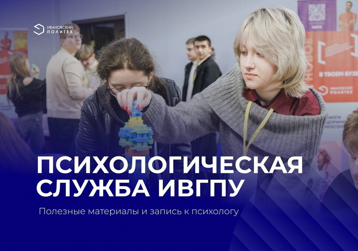 👉 На сайте Ивановского Политеха обновили раздел психологической службы Вопросы, по которым можно и нужно обращаться к психологу: 🔹трудности в учебе 🔹взаимоотношения с ровесниками 🔹взаимоотношения с родителями, преподавателями 🔹выбор жизненного пути 🔹самообразование и саморазвитие Так же, на странице публикуются полезные материалы, например: 📝Тревога. Как оставаться в безопасности? 📝Куда ускользает время и нужно ли успеть ВСЁ? 👻 ИВГПУ в MAX | 📲 ИВГПУ в ВК 👻 Приемная комиссия ИВГПУ