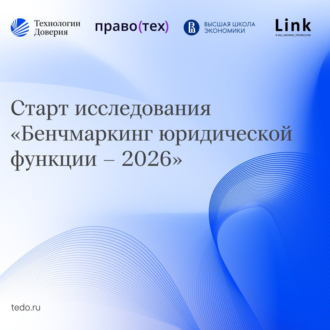 ПравоТех, Высшей школой юриспруденции и администрирования НИУ ВШЭ, единственной в России бизнес-школой для юристов, и сообществом руководителей юридических команд LINK. 🔎 Бенчмаркинг юридической функции — ежегодное исследование, которое позволяет сформировать полное и актуальное представление о развитии юридических департаментов в российских компаниях и выявить основные тенденции на будущее В рамках исследования анализируются ключевые параметры эффективной работы юридической функции: 🔹 Численность 🔹 Бюджет команды и ее роль в структуре компании 🔹 Уровень стандартизации и автоматизации процессов 🔹 Применение ИИ и многое другое ✅ Принять участие в исследовании можно до 31 мая. Каждому участнику будет направлен бесплатный финальный отчет ➡️ Заполнить анкету ➡️ Ознакомиться с результатами «Бенчмаркинга юридической функции — 2025» #ТеДотека