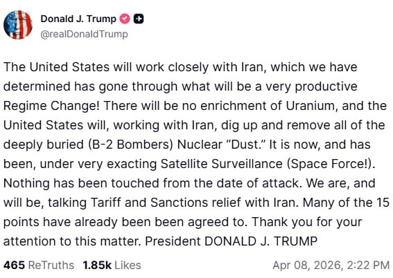 ⚡️ Соединенные Штаты будут тесно сотрудничать с Ираном, который, как мы определили, пережил очень продуктивную смену режима, — Трамп