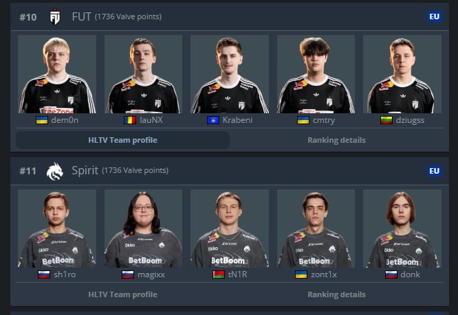 😭 Team Spirit вылетели из топ-10 рейтинга Valve