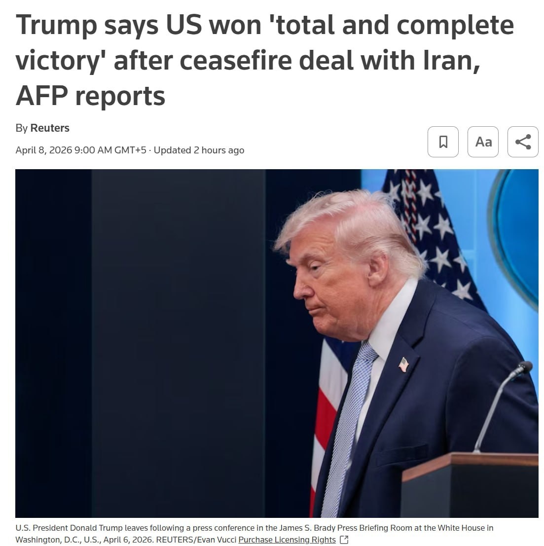 Агентство AFP уточнило у американского президента, считает ли он прекращение огня победой, и Трамп ответил утвердительно. Кроме того, президент США заявил о том, что об иранском уране «позаботятся». Подпишись на БородинLIVE Новости
