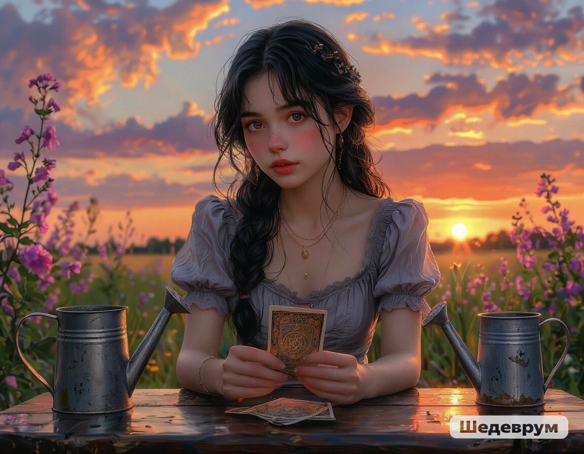 Я же, опишу своё стандартное видение-трактовку. Если почувствуете, что где-то внутри мой текст "откликается" , то так тому и быть. Если ощутите отторжение информации, то прислушивайтесь только к себе🙌. Сегодня на метафорической карте девушка стоит под радужным зонтом, рядом парят две лейки, а над ней сияет радуга сквозь облака. Девушка - внутренний стержень и спокойствие, зонт - защита и личные границы, радуга - надежда, удача и свет после тревог, лейки - забота, питание идей и постепенный рост. День предвещает: после сомнений или напряжения начнёт проясняться то, что раньше казалось туманным. Утром - настройся на хорошее, выбери яркий акцент в одежде: жёлтый, голубой или зелёный. Днём - благоприятно общаться, защищать себя, работат