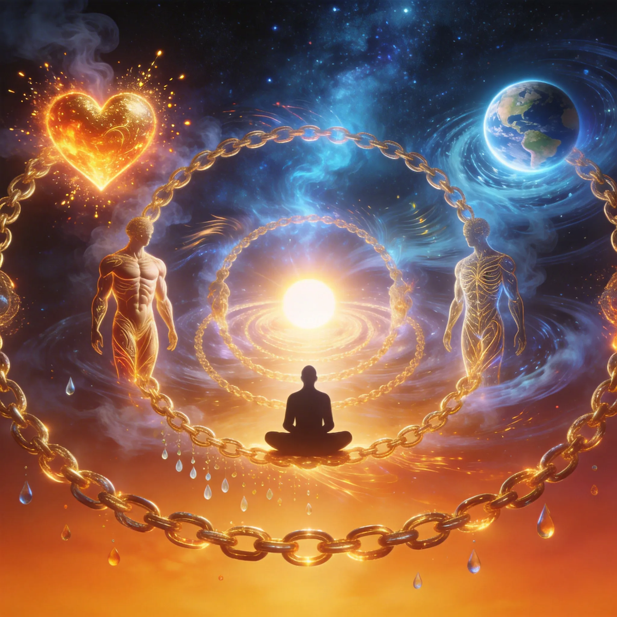 Концепция причинно-следственных связей работает на всех уровнях, от элементарных частиц до звёзд и планет. Энергетические потоки сплетены в сеть настолько плотно, что человек, как правило, предпочитает об этом просто не задумываться. Цепь бесконечна, даже смерть — это лишь переход к иным процессам, где атомы перестраиваются, энергия течёт дальше, как реки впадают в океан, чтобы испариться и упасть дождём из облака уже где-то в другом месте.