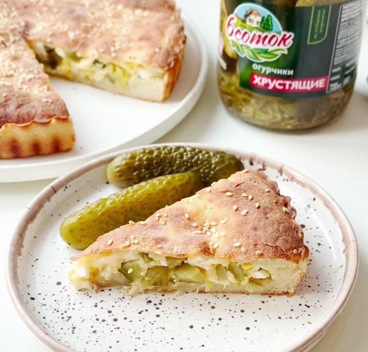 Пирог с маринованными огурцами и моцареллой