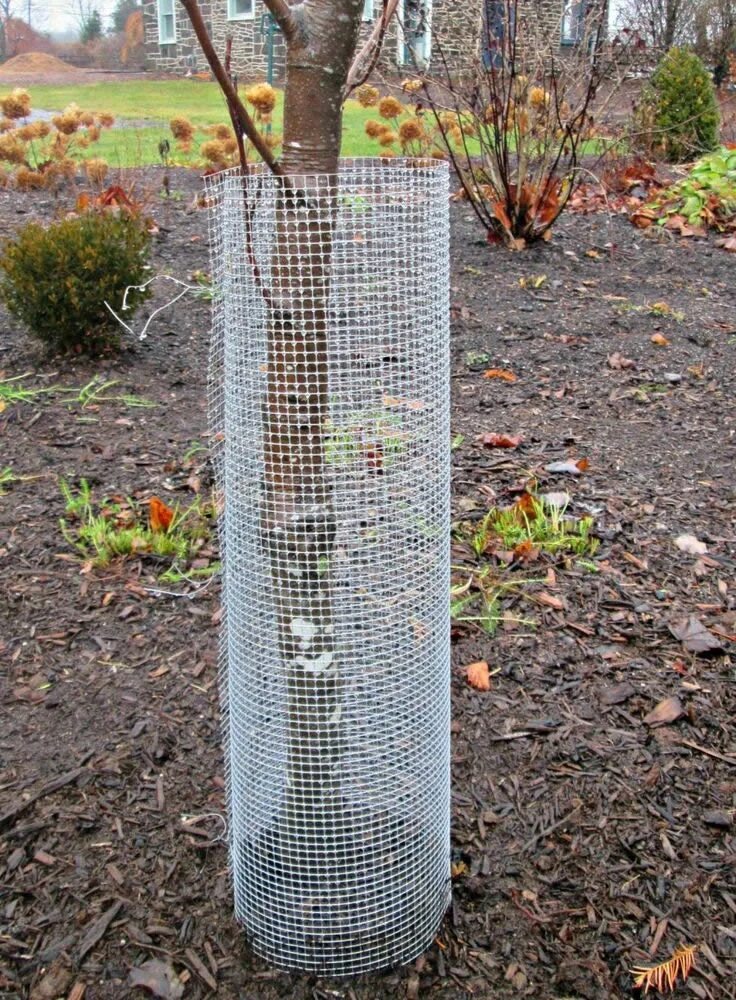 · Главное средство – физический барьер. Самый надежный способ — обмотать ствол пластиковой сеткой (рабица с мелкой ячейкой) или специальной садовой сеткой от грызунов. Высота — не менее 1–1.5 метра (заяц встает на задние лапы). Важно: сетка не должна плотно прилегать к коре, оставьте зазор 2-3 см.