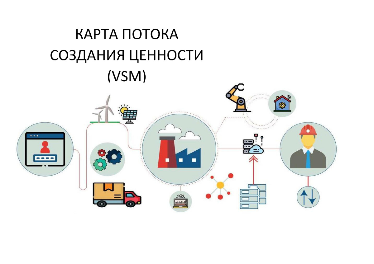 VSM — это схема (карта), на которой вы рисуете «каждый шаг», который проходит ваш продукт или услуга от запроса клиента до получения результата. На карту наносятся: