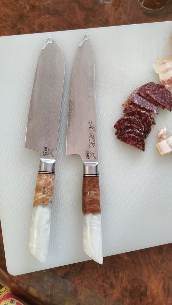 🔥🔥🔥 Правильно, Наталья, а что еще нужно 😉 Вот такой заказ выполнили, еще гравировочку с инициалами владелицы сделали на шеф-ноже 🔥 🔪 КОЙШИ Сталь: VG-10 (58–62 HRC) Литьё: нержавеющая сталь AISI 430, две чёрные проставки G10 по 1 мм и белая медная проставка 1 мм Рукоять: натуральный клён + белая смола, украшена пином 8 мм ❗️Помните: комплектом всегда выгоднее. Если вы решите заказать сразу несколько кухонных ножей, то автоматом получаете скидку: ◾️ -15% при покупке 2 ножей ◾️ -25% при покупке 3 ножей ◾️ -30% при покупке от 4 ножей ‼️ Все заказы и вопросы — только в личные сообщения 👉🏻📱 Написать Михаилу 🔪 Подписаться на БАРК РФ в MAX