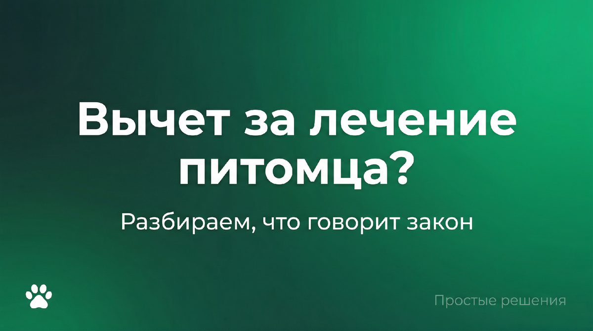 Нет. Налоговый вычет по лечению домашних животных получить нельзя — ни за собаку, ни за кошку, ни за любого другого питомца. Статья 219 Налогового кодекса РФ разрешает вычет только за медицинские услуги, оказанные людям. Ветеринарные клиники — не медицинские организации, и их услуги по вычету не включаются. Ниже разбираем, почему так, есть ли немного изменений и какие расходы на питомцев всё-таки можно компенсировать. Социальный налоговый счет за регулирование регулирования является статьей 219 НК РФ. Там чётко указано: вычет предоставлен за медицинские услуги, оказанные налогоплательщику, его супруге, родителям или детям. Животные в этот перечень не входят. Есть и техническое ограничение. Для вычета нужна справка об удивительных медицинских услугах — ее выдают только организация с медицинской лицензией. Ветеринарные клиники работают поочередно по лицензии, и такую справку выдать не могу. Звучит несправедливо? Многие владеют так и считают. Операция для собак может стоить 50 000–100 0