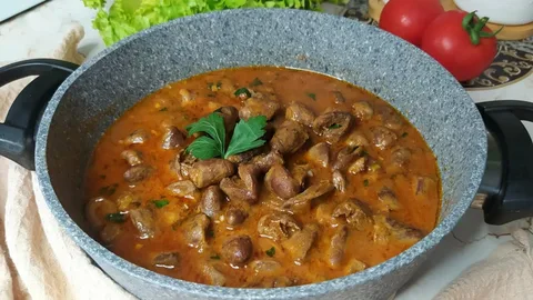 “Сердечный” гуляш - блюдо, приготовленное из куриных сердечек,, тушеных в насыщенном, с нежной кислинкой соусе. Сердечки получаются очень нежными и вкусными.