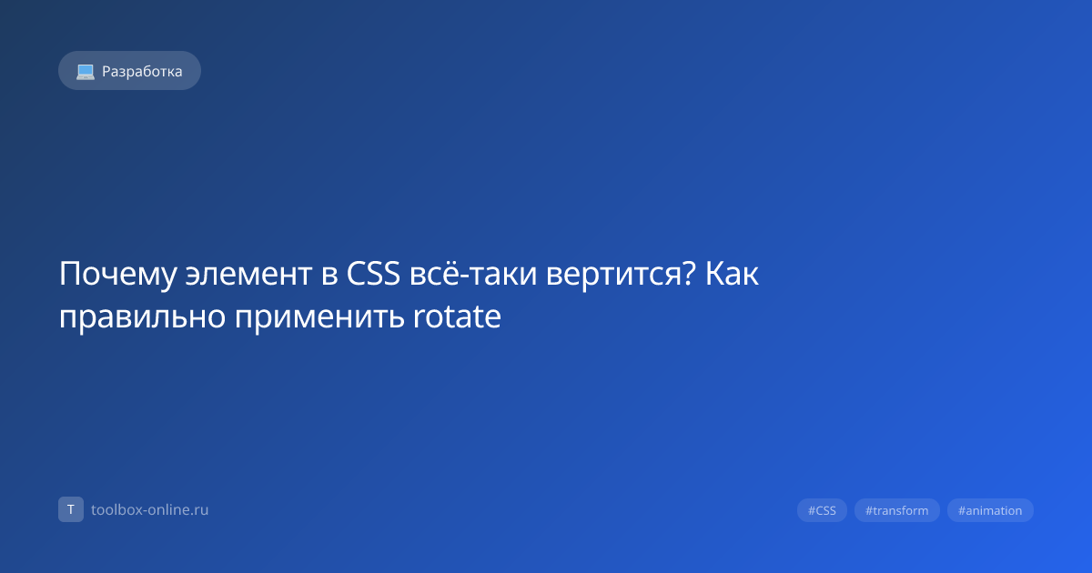 Элемент в CSS «вертится» благодаря свойству transform: rotate(), которое задаёт угол поворота в градусах или радианах. При правильном указании центра вращения и длительности анимации элемент будет крутиться ровно так, как задумано, без неожиданного смещения. Свойство rotate() принимает один параметр — угол, например rotate(45deg) или rotate(0.5turn). Угол измеряется в градусах (deg), радианах (rad) или оборотах (turn). При применении к элементу браузер вычисляет матрицу преобразования и рисует элемент под нужным углом. Неправильный центр вращения (transform‑origin) и конфликтующие свойства часто вызывают «скачки» и искажения. По умолчанию центр находится в точке 50% 50%, но если элемент имеет асимметричную форму, визуально кажется, что он вращается вокруг другого места. Для корректного позиционирования используйте transform‑origin с точными значениями в пикселях или процентах. Это позволяет задать любой «пивот», например центр нижней грани. Для плавного вращения используют keyframes и