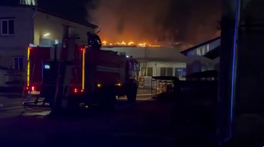 В Молодечно горел цех: для ликвидации пожара были задействованы 10 единиц техники МЧС