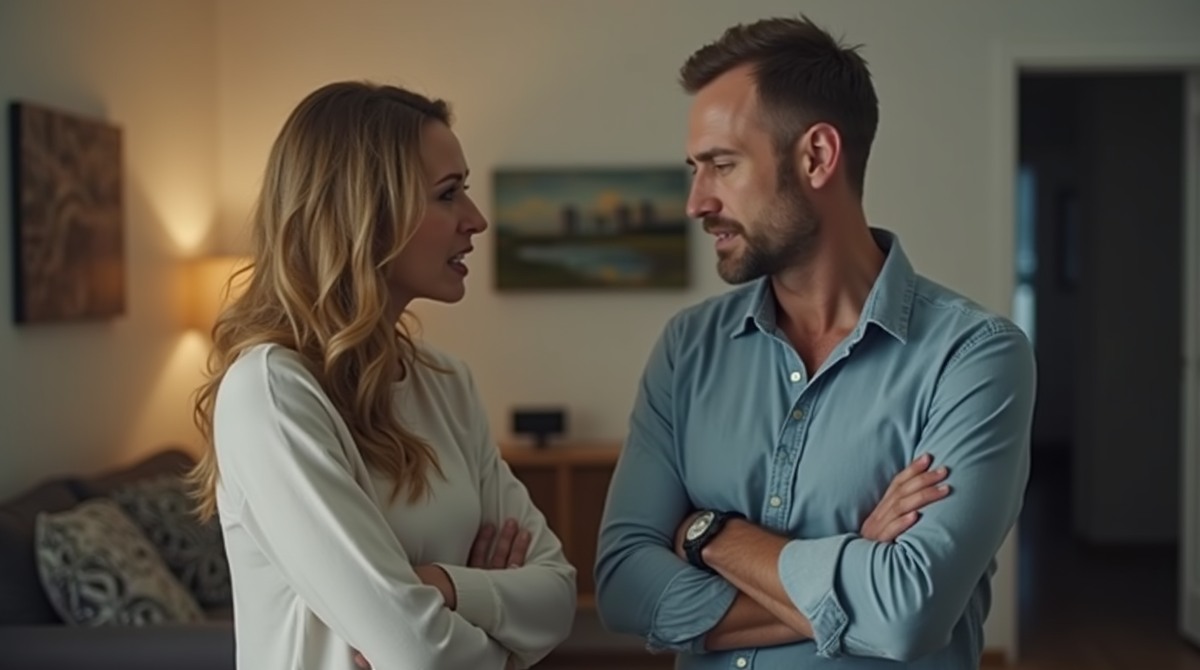 Он замер в дверях гостиной, всё ещё держа в руках ключи от машины. Его лицо, обычно спокойное и чуть усталое после рабочего дня, медленно наливалось краской. Он смотрел на жену, словно пытаясь понять, не ослышался ли.