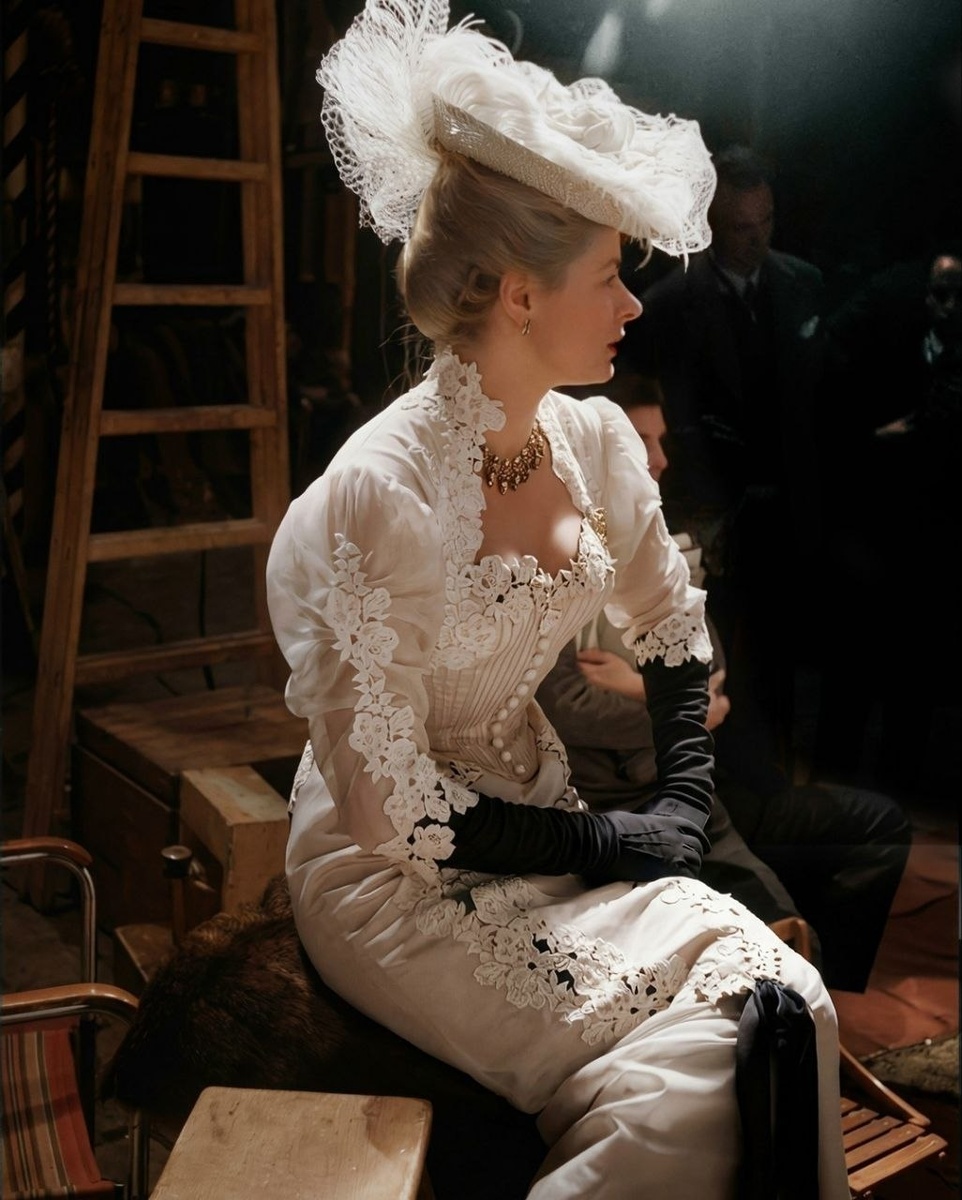 »! 😂 Шведская актриса Ингрид Бергман на съемочной площадке комедийно-драматического фильма 1956 года, который снял режиссер Жан Ренуар. В центре сюжета — вдова польского князя Елена Сороковская, которая привлекает внимание не только старого обувного магната, но и бравого французского генерала! 🇫🇷 А что же еще? Политические интриги, цыганский табор и, конечно, ухаживания! Все это происходит на фоне Франции конца XIX века. Оригинальное черно-белое фото актрисы теперь радует глаз после цветной реконструкции от талантливой художницы!
