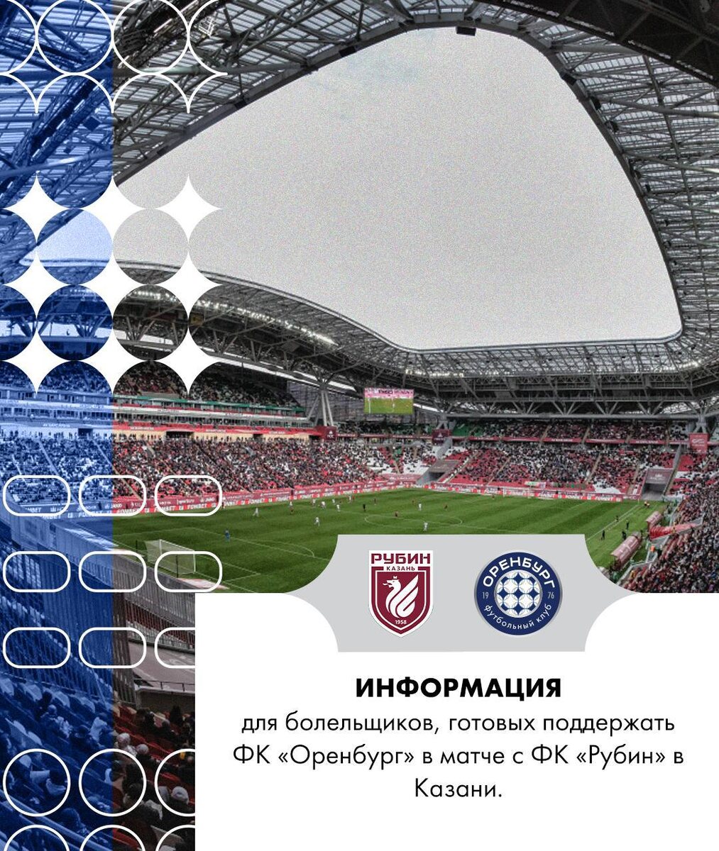 Информация для болельщиков ФК «Оренбург», желающих посетить матч против «Рубина» в Казани