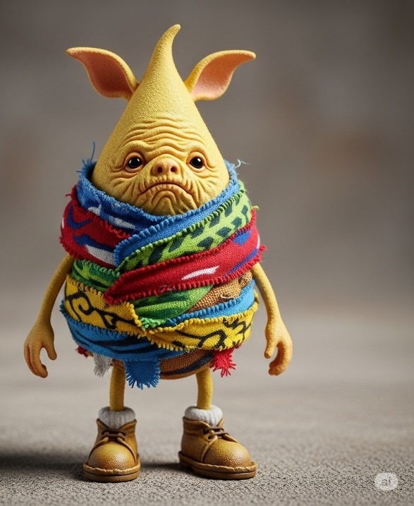Наутро, за завтраком, Пончик увидел бабю. Это было явно очень старое существо, слегка сморщенное и скособоченное. И без комбинезона, но закутанное в какие-то разноцветные одежды. Так что в верхней части существа был виден его естественный цвет, напоминающий картофелину, но пожелтее, чем у Замча. Бабю сурово оглядела Пончика и спросила: