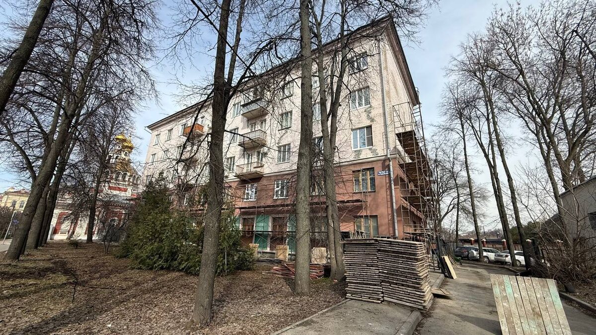 Стартовал ремонт фасадов шестиэтажного жилого дома 1958 года постройки на улице Карла Маркса по соседству с Варваринской церковью.