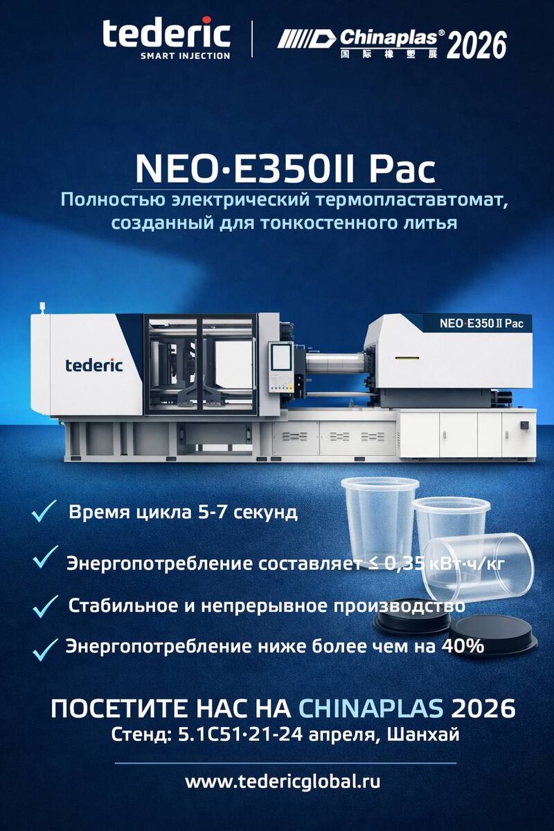 ? Мы подготовили несколько производственных решений для разных сегментов литья под давлением — от тонкостенной упаковки до высокоскоростного массового производства. 💠NEO·H1100ultraX — высокопроизводительный двухплитный ТПА для массового выпуска изделий и технологий IML. 💠 NEO·E350II Pac — полностью электрический ТПА для тонкостенного литья упаковки с коротким циклом и низким энергопотреблением. 💠NEO·E160II — электрическая машина для высокоточного производства, включая медицинские изделия и работу в чистых помещениях. 💠NEO·T500 — коленно-рычажный ТПА для стабильного серийного производства с высокой энергоэффективностью. Выставка уже скоро, если планируете посетить наш стенд, или хотите увидеть собственными глазами, как происходит создание термопластавтоматов Tederic - напишите нам в личные сообщения! ✉️ 📍 Шанхай 📅 21–24 апреля 📍 Стенд Tederic: 5.1C51