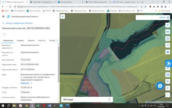 м., с кадастровым номером: 36:13:3200004:304, категория земель: земли сельскохозяйственного назначения, местоположение земельного участка: Воронежская область, Каширский район, с. Красный Лог, южная часть кадастрового квартала 36:13:3200004 Канал: Госземля Воронежская область Область: обл Воронежская Воронежская область Район: Каширский район Населенный пункт: с. Красный Лог, южная часть кадастрового квартала 36:13:3200004 Локация: Смотреть на карте ВРИ: Сельскохозяйственное использование Кадастровый номер: 36:13:3200004:304 Кадастровая стоимость: - Вид сделки: Аренда Площадь: 15000 м² Начальная цена: 22500.00 руб. Дата завершения: 19.04.2026 Подробнее: ГИС ТОРГИ #госземля #земляотгосударства #земля #земельныйучасток #земельныеторги #торги #аукцион #арендаземли #аренда #воронежскаяобласть