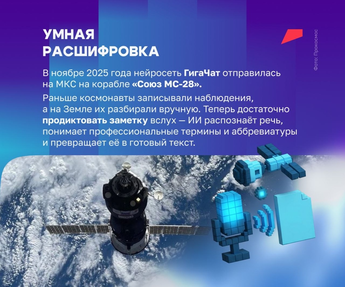 ️⃣ Умный помощник для работы в космосе 🖱 Искусственный интеллект всё активнее используют там, где особенно важны точность и скорость. Поэтому он становится настоящим напарником для специалистов на орбите. ИИ берёт на себя рутинные задачи, быстрее обрабатывает данные, следит за состоянием техники и даже заботится о здоровье космонавтов. Собрали в карточках примеры, как уже применяют нейросети и что ещё планируют сделать. Развитие космической отрасли в России поддерживает нацпроект «Космос». По нему внедряют новые технологии и улучшают спутниковые сервисы 🤖 #ИИ #нацпроекткосмос #неделякосмоса ⚡️ Подписывайтесь на канал Национальных проектов | Читайте нас в MAX