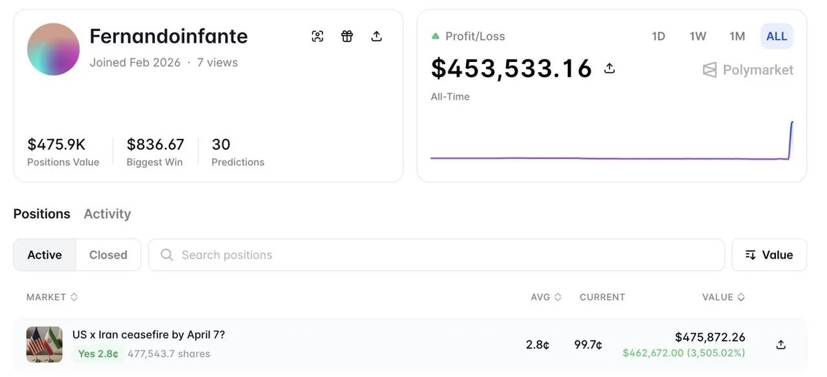 на ставке по перемирию между США и Ираном Трейдер на платформе Polymarket заработал $463 тыс., поставив на перемирие между США и Ираном к 7 апреля. Как это повлияло на рынок предсказаний и почему такие https://brokerlist.info/trejder-na-polymarket-zarabotal-463-tys-na-stavke-po-peremiriyu-mezhdu-ssha-i-iranom/ #brokerlist #форекс