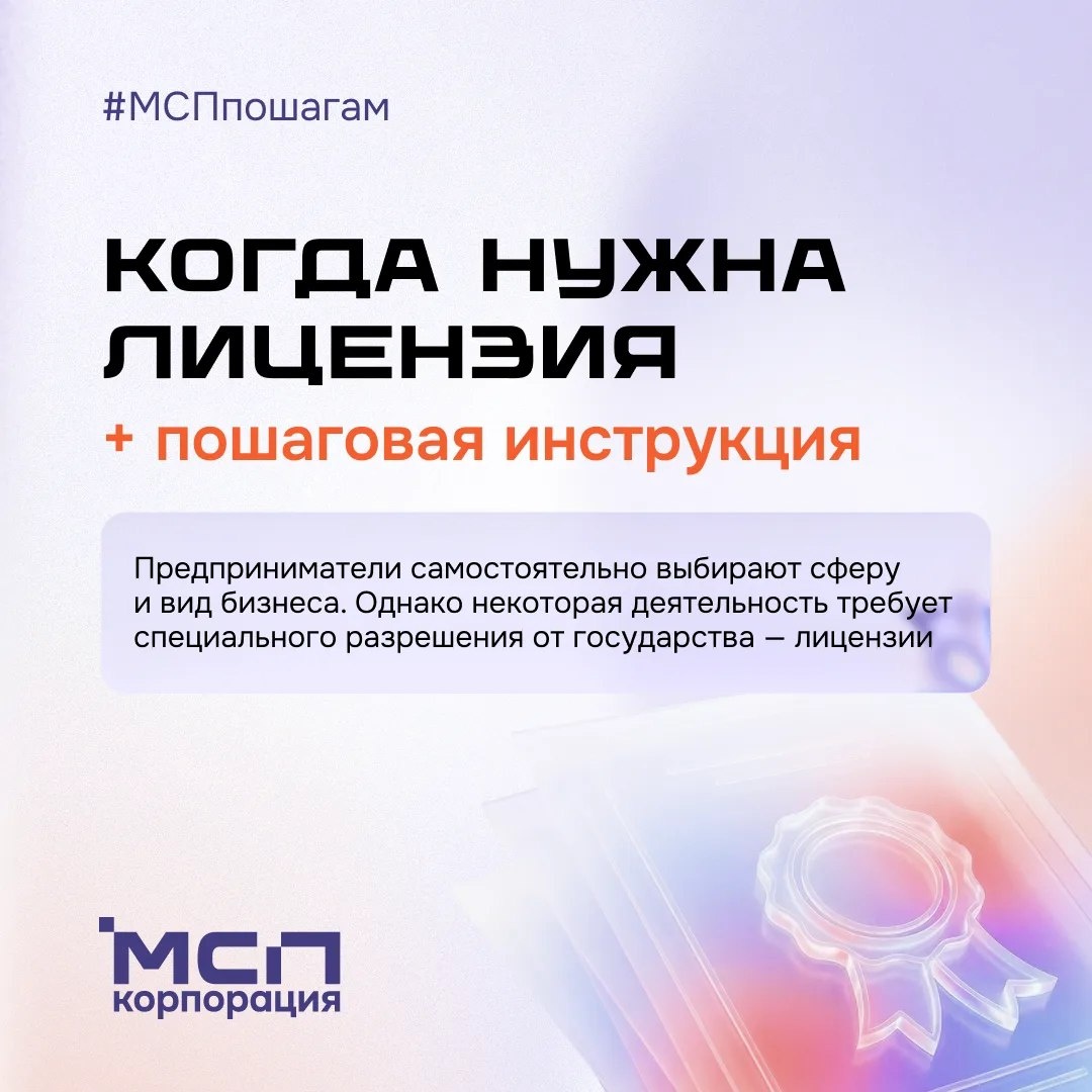 📍Что такое лицензия, когда она точно понадобится и что нужно для получения? — Рассказываем в карточках 👍. 📲 Корпорация МСП в MAX