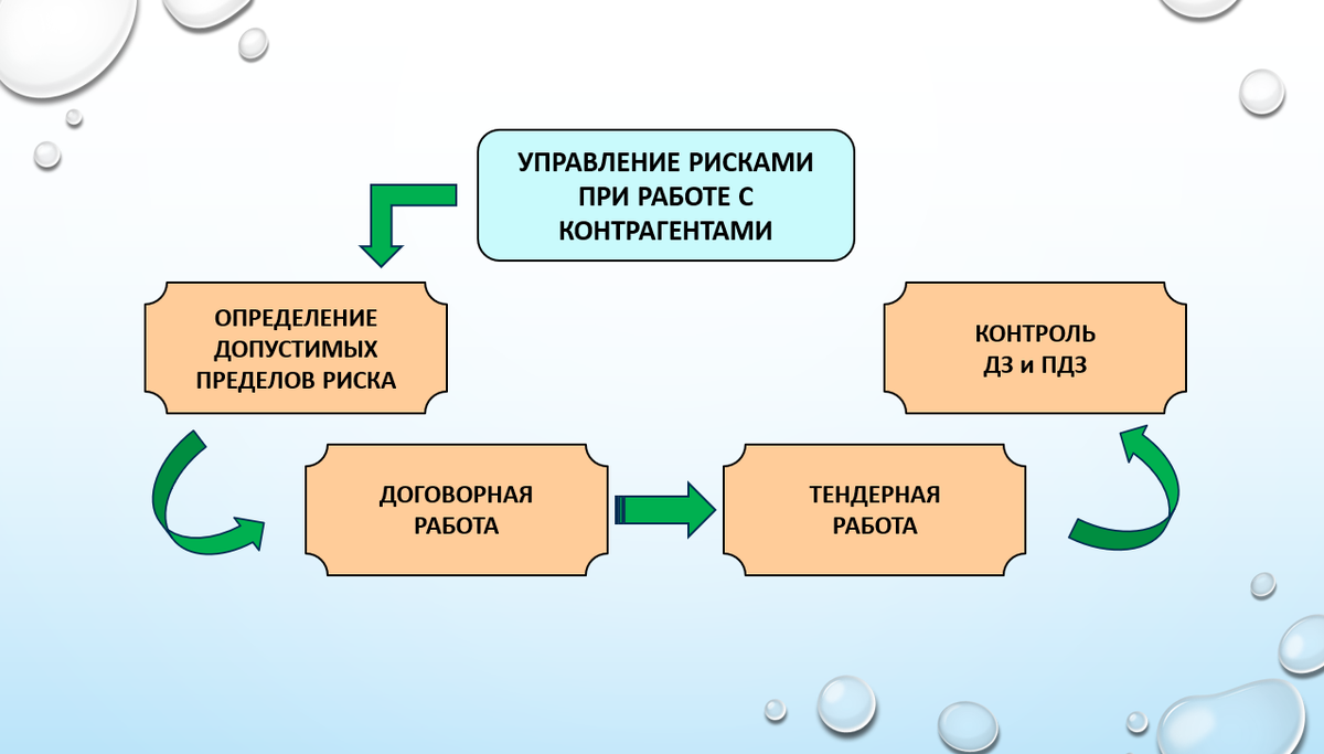Принципы оценки рисков, заложенные в регламенте по управлению рисками, являются фундаментом, на котором строится договорная и тендерная работа, системы управления ДЗ/ПДЗ и ценообразования реализуемых товаров и (или) услуг.