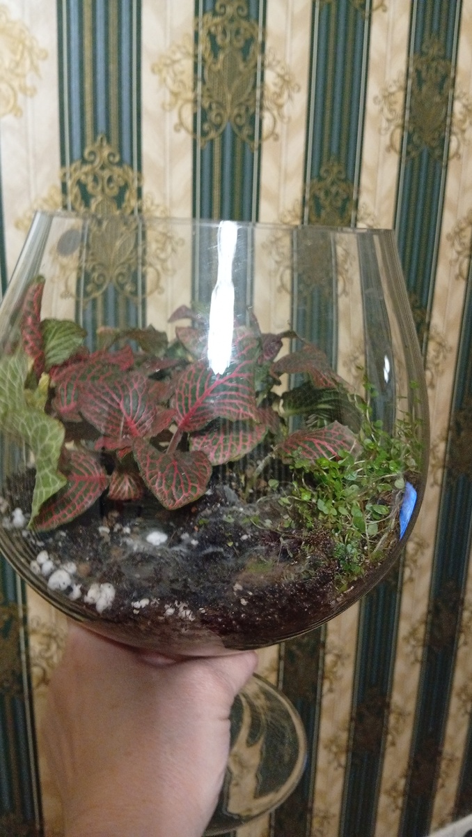 Насыпала ей новый грунт в смеси с перлитом для проницаемости. И тут вспомнила про фиттонию. В общем, пока прошла неделя и обе красотки, сидят рядом, чувствуют себя очень даже неплохо.