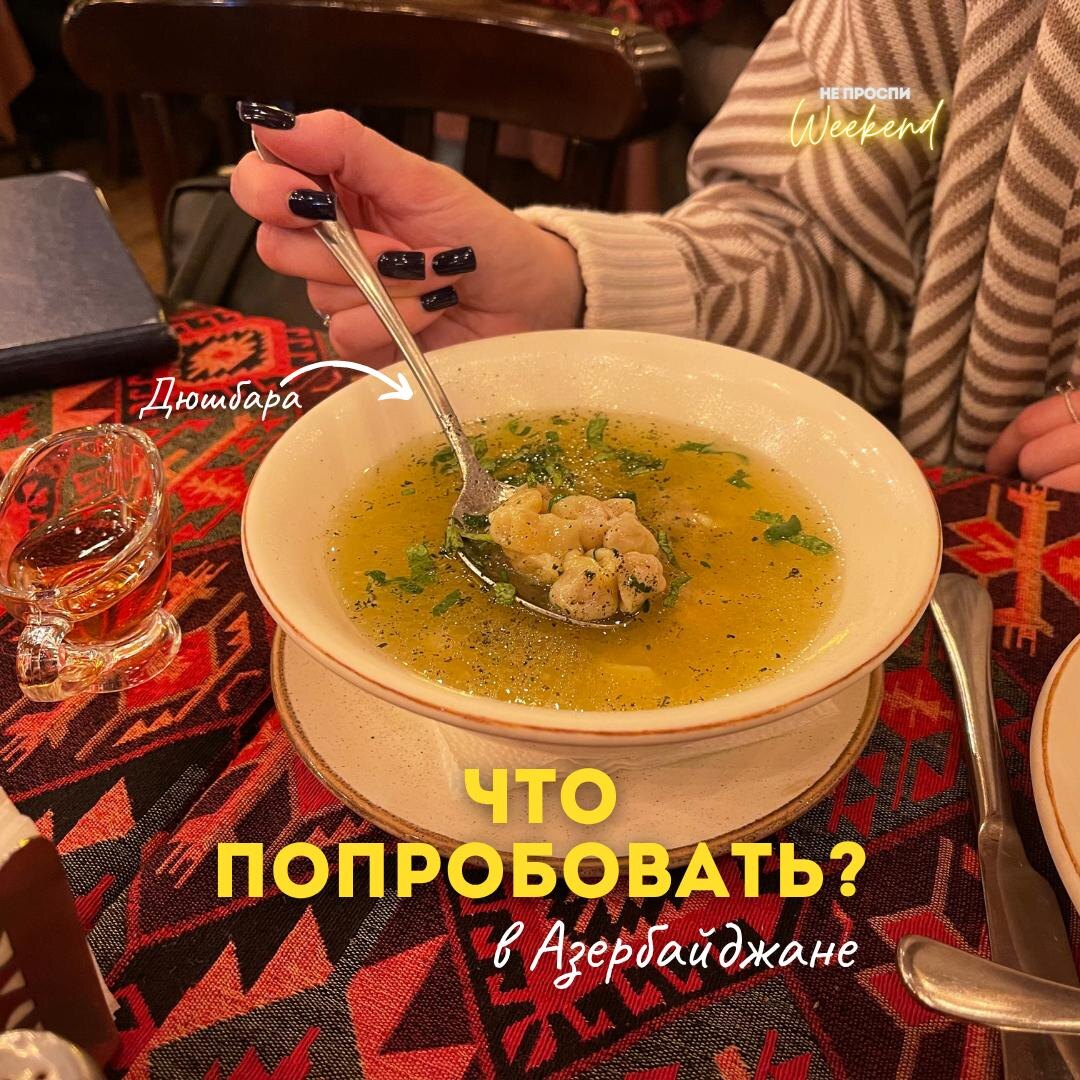 ? Если вы собрались в Азербайджан и хотите вернуться в тех же джинсах - не получится 😀 кухня очень разнообразная и вкусная: здесь умеют готовить мясо, работать с тестом, печь десерты и делать вино. Обязательная программа: 🥟 Дюшбара - крошечные пельмешки в бульоне. Это блюдо, кстати, попало в список лучших блюд из теста в мире. 🍖 Хингал (не хинкали!) - вкуснейшее тесто с фаршем, топленым маслом и зеленью. 🍛 Плов - очень много видов (более 200 и у каждой семьи свой рецепт). Особенно интересный по подаче - шах плов. 🍲 Пити - интересное и сытное блюдо, что-то между супом и гуляшом. Мясо, нут и картошку необходимо перемешать, а бульоном запивать отдельно. 🌿 Кюкю - омлет с зеленью (в основном в рецепте идут кинза, шпинат и укроп). 🥠 Кутабы - напоминает наш чебурек. Бывает с зеленью, с мясом, с сыром. 🍇 Долма - мясная начинка в виноградных листьях. Сладости: 🍯 Пахлава. • Бакинская - слоистая и с орехами; • Шекинская - из рисовой муки; • Сочинская - нежные песочные коржи и ор