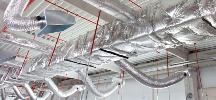 - Транспортировка тёплого воздуха зимой или холодного воздуха летом — если по воздуховодам подаётся нагретый воздух (например, от системы воздушного отопления) или охлаждённый (от кондиционера), утепление предотвращает теплопотери или нагрев воздуха, а также образование конденсата на поверхности.