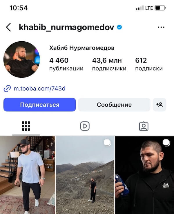 1. Хабиб Нурмагомедов (@khabib_nurmagomedov) – 43,6 млн подписчиков